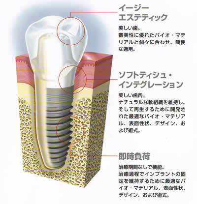 (IMPLANT)とは…im=in=中に plant=入れ込む の文字どおり、骨の中に人工の歯根を埋め込む技術です。